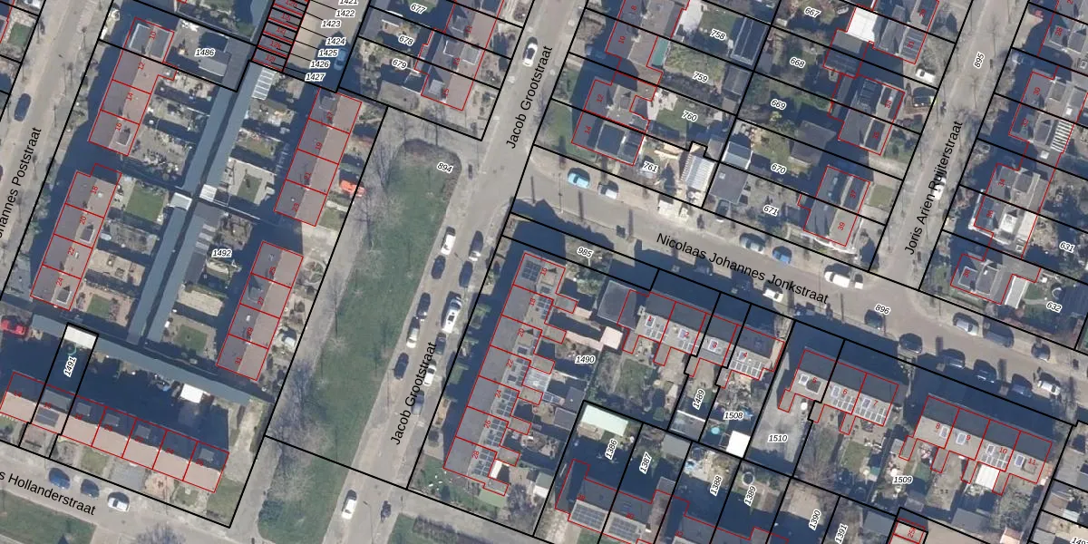 Het perceel waarop Jacob Grootstraat 16 staat heeft een oppervlakte van 1677 m². Dit is een zeer groot perceel. De perceeloppervlakte wordt geregistreerd door het Kadaster. Gedetailleerde informatie over de maten van dit perceel kunt u vinden in het rapport Kadastrale kaart met maatvoering van Jacob Grootstraat 16.