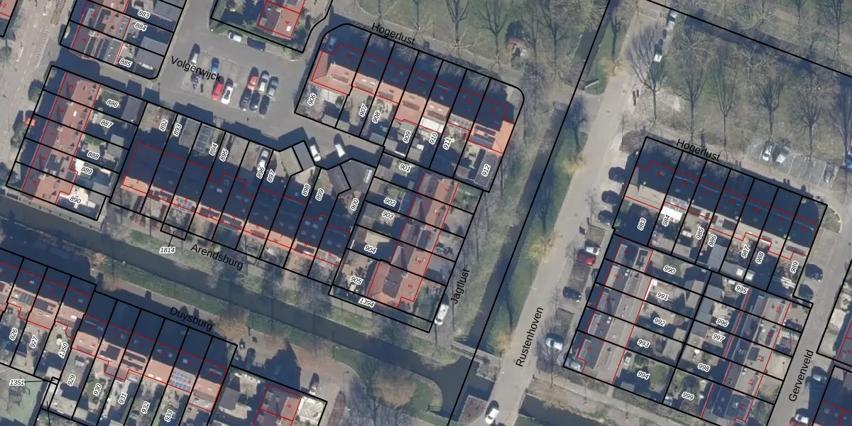 Gebruik de zoekbalk of klik op een perceel voor informatie over de adressen binnen dit perceel.