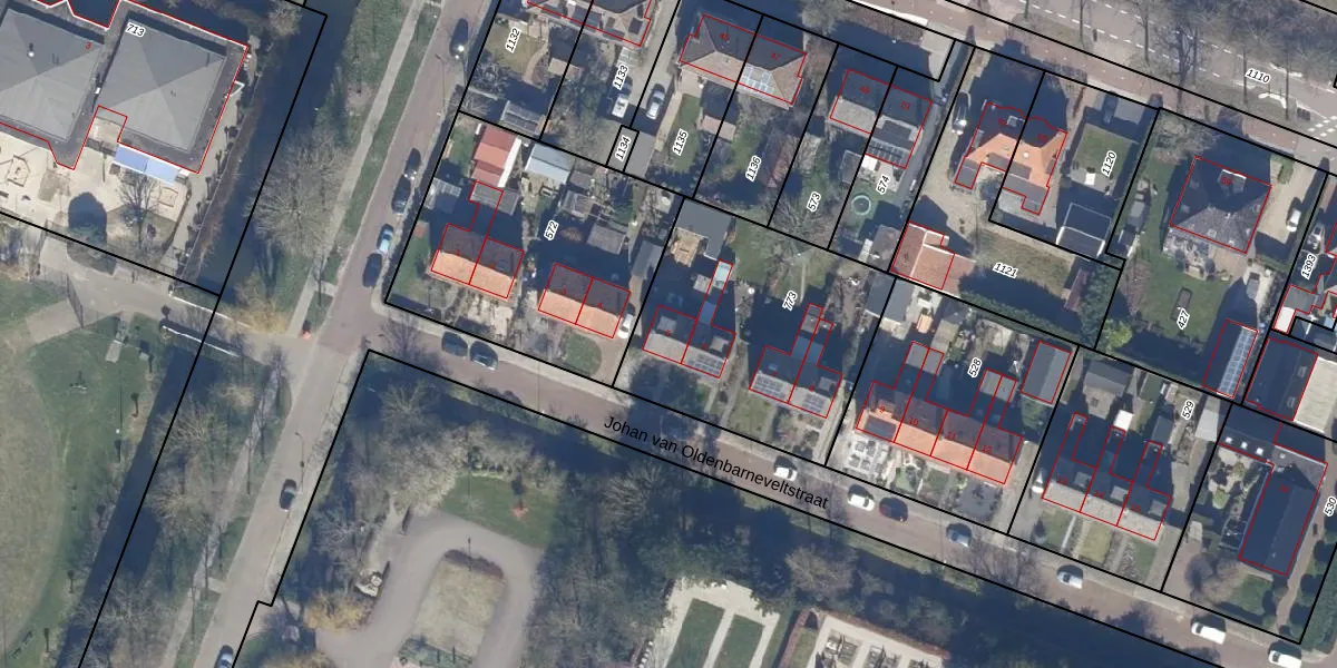 Het perceel waarop Johan van Oldenbarneveltstraat 5 staat heeft een oppervlakte van 1040 m². Dit is een zeer groot perceel. De perceeloppervlakte wordt geregistreerd door het Kadaster. Gedetailleerde informatie over de maten van dit perceel kunt u vinden in het rapport Kadastrale kaart met maatvoering van Johan van Oldenbarneveltstraat 5.