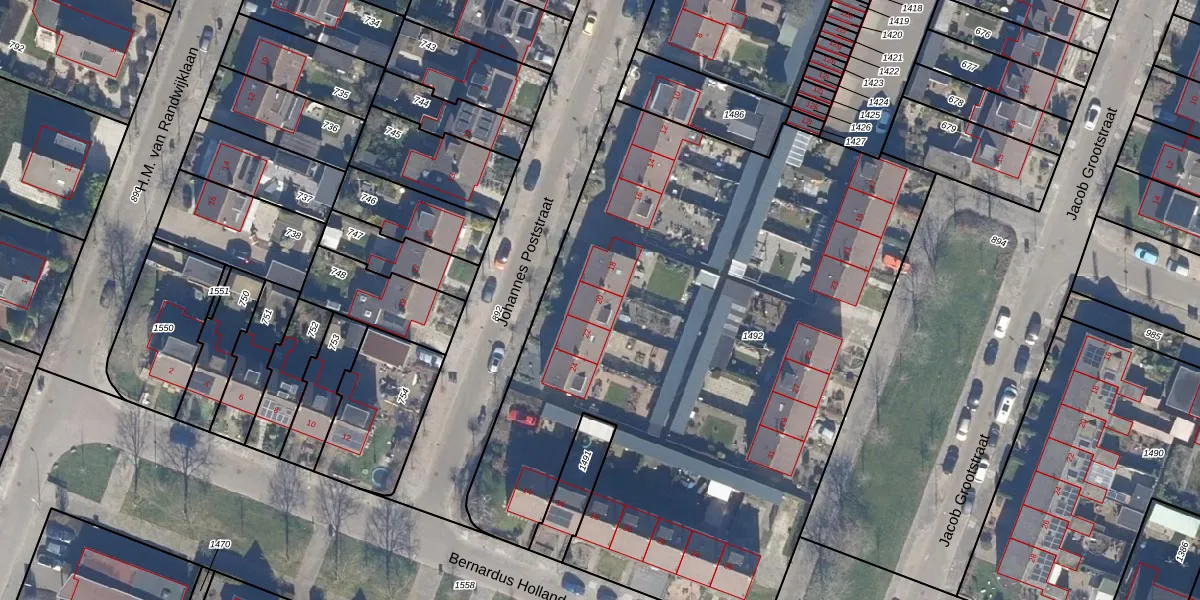 Het perceel waarop Johannes Poststraat 20 staat heeft een oppervlakte van 4117 m². Dit is een zeer groot perceel. De perceeloppervlakte wordt geregistreerd door het Kadaster. Gedetailleerde informatie over de maten van dit perceel kunt u vinden in het rapport Kadastrale kaart met maatvoering van Johannes Poststraat 20.