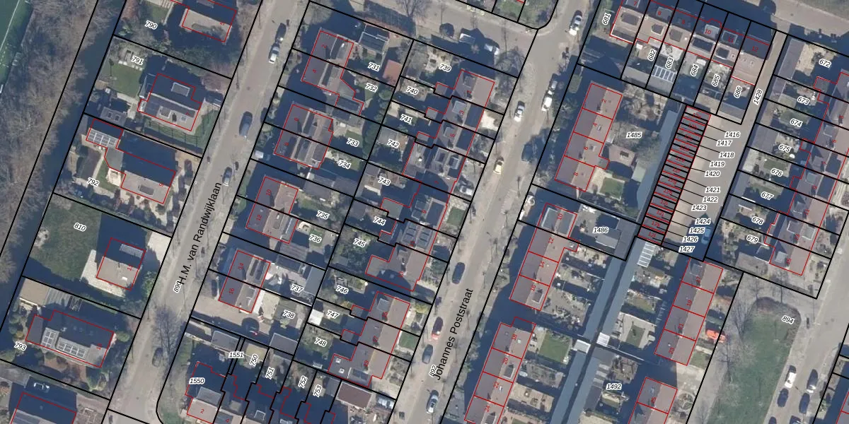 Het perceel waarop Johannes Poststraat 9 staat heeft een oppervlakte van 249 m². Dit is een middelgroot perceel. De perceeloppervlakte wordt geregistreerd door het Kadaster. Gedetailleerde informatie over de maten van dit perceel kunt u vinden in het rapport Kadastrale kaart met maatvoering van Johannes Poststraat 9.