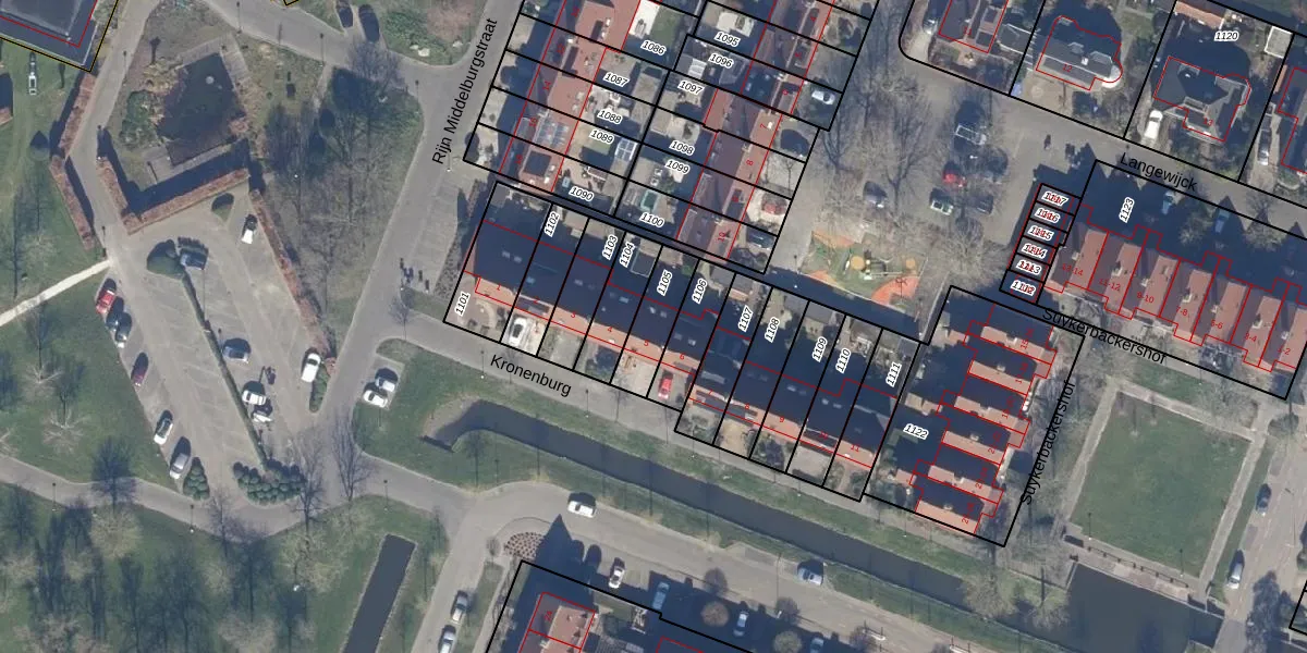Gebruik de zoekbalk of klik op een perceel voor informatie over de adressen binnen dit perceel.