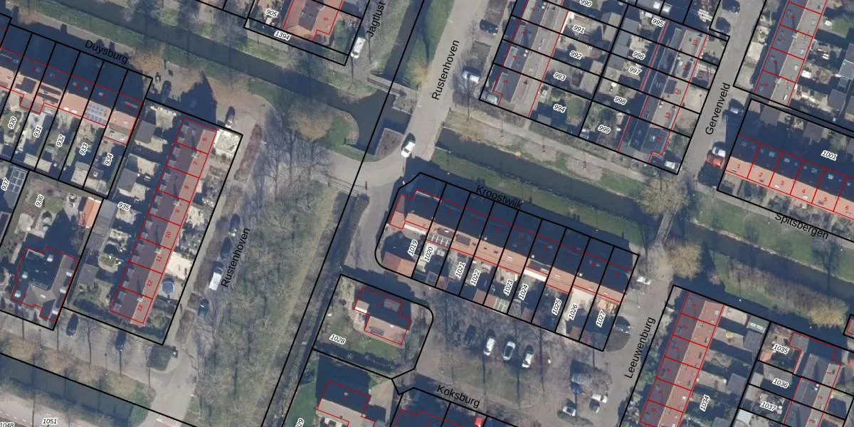 Het perceel waarop Kroostwijk 1 staat heeft een oppervlakte van 227 m². Dit is een middelgroot perceel. De perceeloppervlakte wordt geregistreerd door het Kadaster. Gedetailleerde informatie over de maten van dit perceel kunt u vinden in het rapport Kadastrale kaart met maatvoering van Kroostwijk 1.