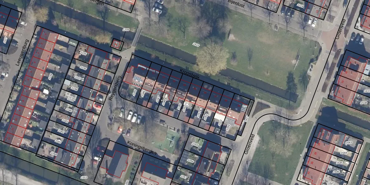 Het perceel waarop Kroostwijk 14 staat heeft een oppervlakte van 144 m². Dit is een middelgroot perceel. De perceeloppervlakte wordt geregistreerd door het Kadaster. Gedetailleerde informatie over de maten van dit perceel kunt u vinden in het rapport Kadastrale kaart met maatvoering van Kroostwijk 14.