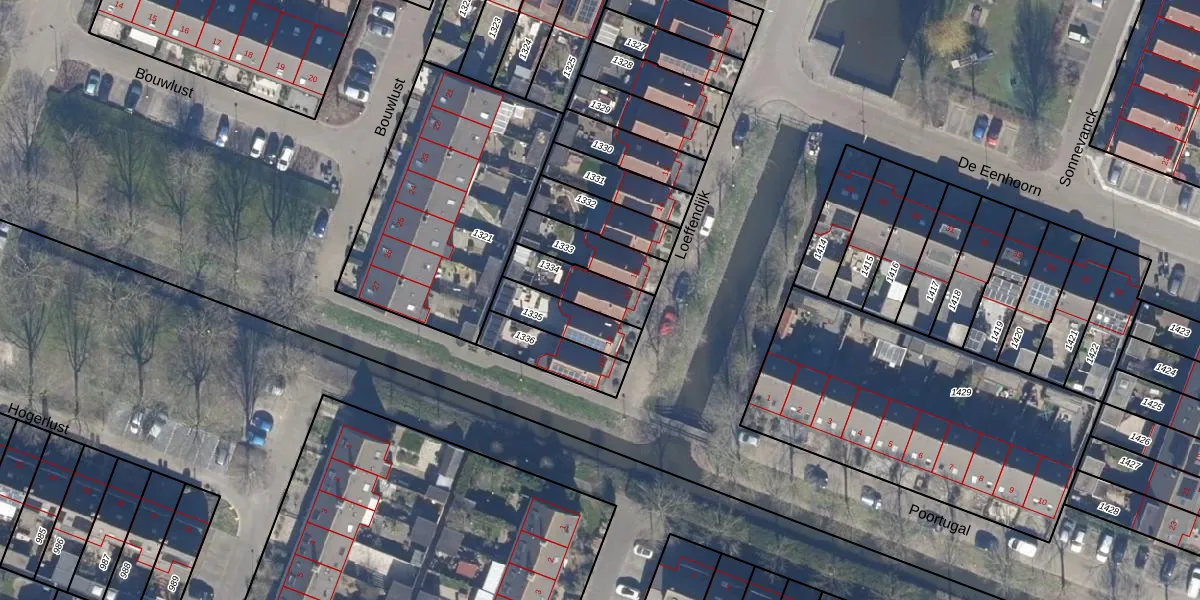 Gebruik de zoekbalk of klik op een perceel voor informatie over de adressen binnen dit perceel.