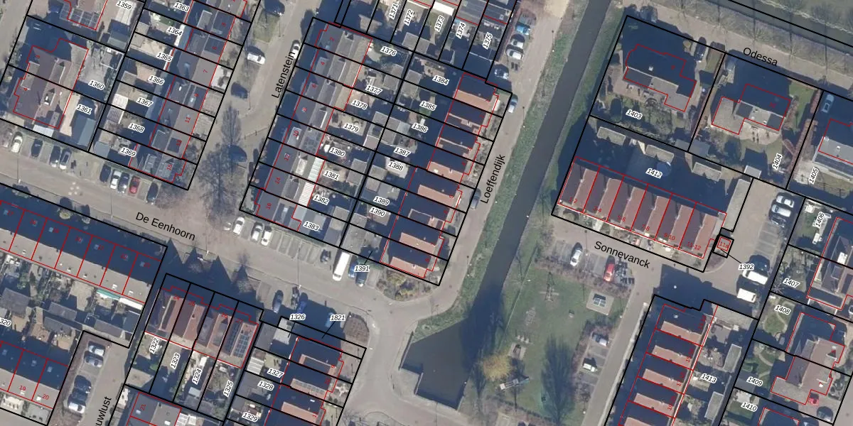 Gebruik de zoekbalk of klik op een perceel voor informatie over de adressen binnen dit perceel.