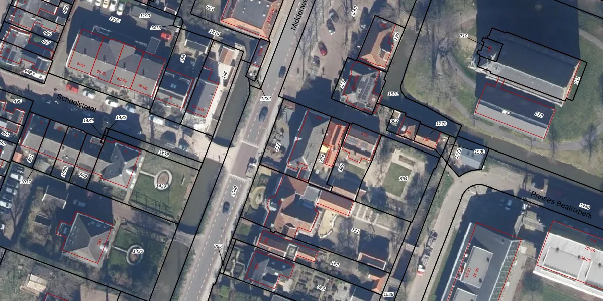 Gebruik de zoekbalk of klik op een perceel voor informatie over de adressen binnen dit perceel.