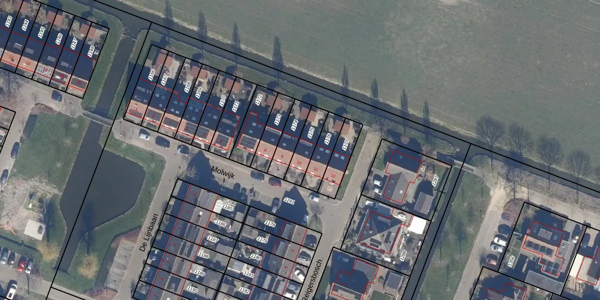 Het perceel waarop Molwijk 10 staat heeft een oppervlakte van 160 m². Dit is een middelgroot perceel. De perceeloppervlakte wordt geregistreerd door het Kadaster. Gedetailleerde informatie over de maten van dit perceel kunt u vinden in het rapport Kadastrale kaart met maatvoering van Molwijk 10.