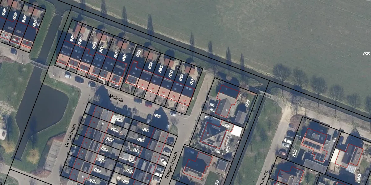 Het perceel waarop Molwijk 12 staat heeft een oppervlakte van 164 m². Dit is een middelgroot perceel. De perceeloppervlakte wordt geregistreerd door het Kadaster. Gedetailleerde informatie over de maten van dit perceel kunt u vinden in het rapport Kadastrale kaart met maatvoering van Molwijk 12.