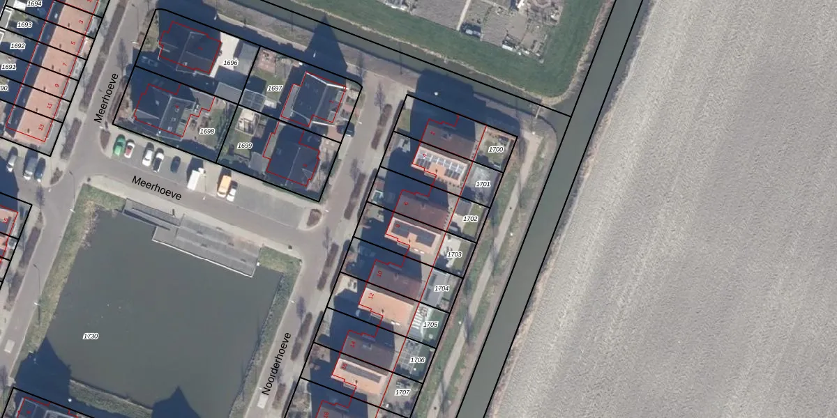 Het perceel waarop Noorderhoeve 6 staat heeft een oppervlakte van 253 m². Dit is een middelgroot perceel. De perceeloppervlakte wordt geregistreerd door het Kadaster. Gedetailleerde informatie over de maten van dit perceel kunt u vinden in het rapport Kadastrale kaart met maatvoering van Noorderhoeve 6.