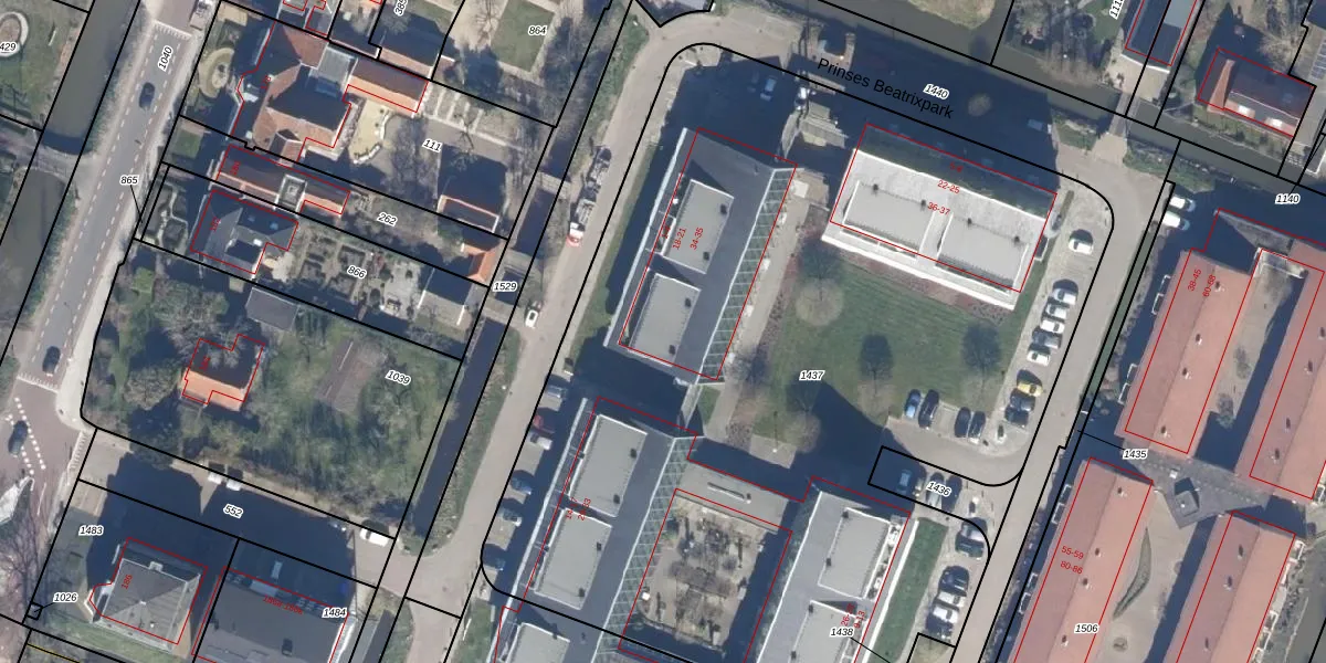 Het perceel waarop Prinses Beatrixpark 1 staat heeft een oppervlakte van 6127 m². Dit is een zeer groot perceel. De perceeloppervlakte wordt geregistreerd door het Kadaster. Gedetailleerde informatie over de maten van dit perceel kunt u vinden in het rapport Kadastrale kaart met maatvoering van Prinses Beatrixpark 1.