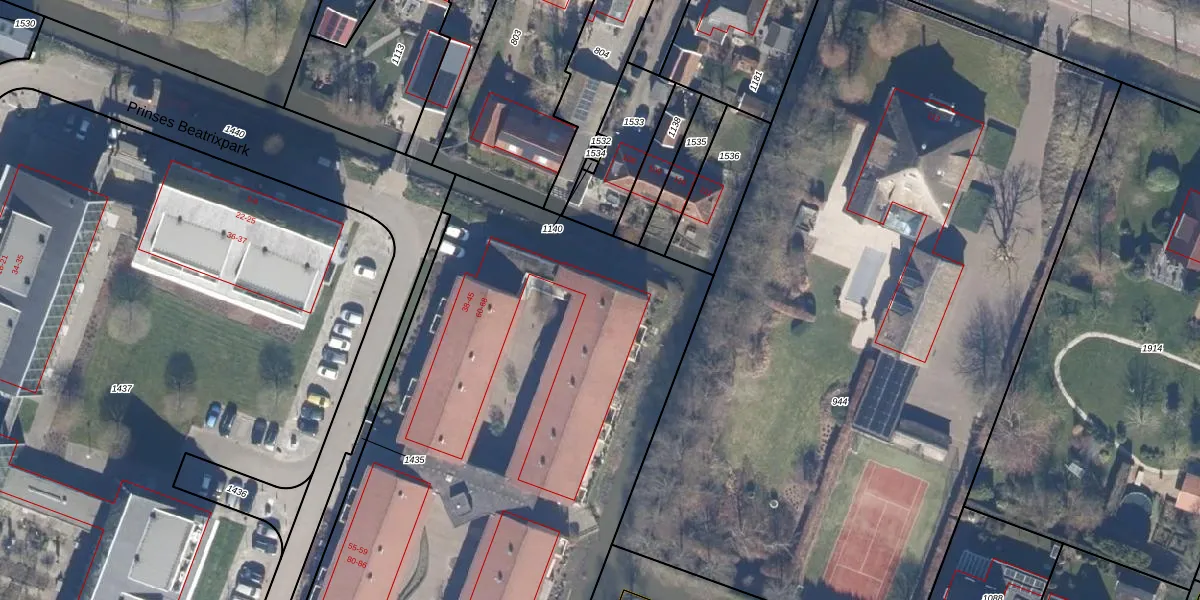 Het perceel waarop Prinses Beatrixpark 41 staat heeft een oppervlakte van 6873 m². Dit is een zeer groot perceel. De perceeloppervlakte wordt geregistreerd door het Kadaster. Gedetailleerde informatie over de maten van dit perceel kunt u vinden in het rapport Kadastrale kaart met maatvoering van Prinses Beatrixpark 41.