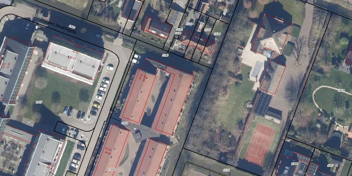 Het perceel waarop Prinses Beatrixpark 45 staat heeft een oppervlakte van 6873 m². Dit is een zeer groot perceel. De perceeloppervlakte wordt geregistreerd door het Kadaster. Gedetailleerde informatie over de maten van dit perceel kunt u vinden in het rapport Kadastrale kaart met maatvoering van Prinses Beatrixpark 45.