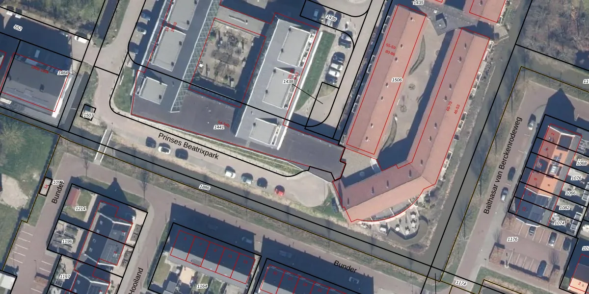 Gebruik de zoekbalk of klik op een perceel voor informatie over de adressen binnen dit perceel.