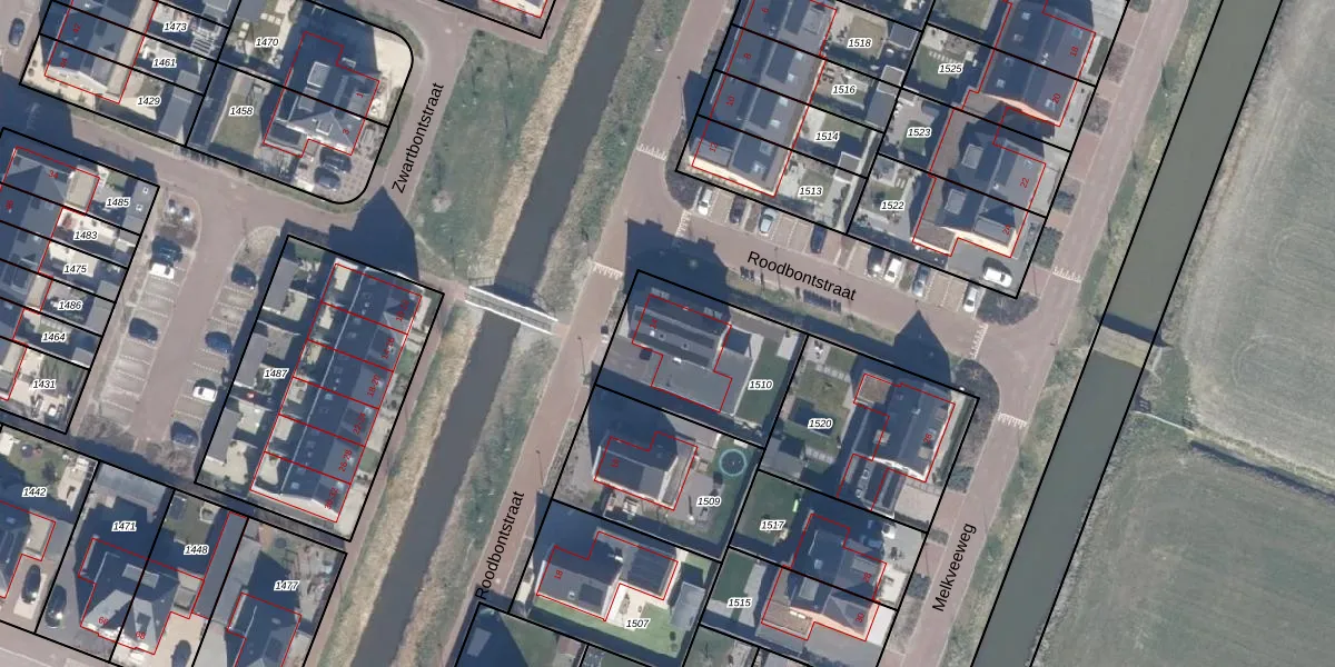 Het perceel waarop Roodbontstraat 14 staat heeft een oppervlakte van 501 m². Dit is een groot perceel. De perceeloppervlakte wordt geregistreerd door het Kadaster. Gedetailleerde informatie over de maten van dit perceel kunt u vinden in het rapport Kadastrale kaart met maatvoering van Roodbontstraat 14.