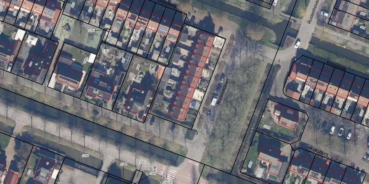 Het perceel waarop Rustenhoven 11 staat heeft een oppervlakte van 1306 m². Dit is een zeer groot perceel. De perceeloppervlakte wordt geregistreerd door het Kadaster. Gedetailleerde informatie over de maten van dit perceel kunt u vinden in het rapport Kadastrale kaart met maatvoering van Rustenhoven 11.