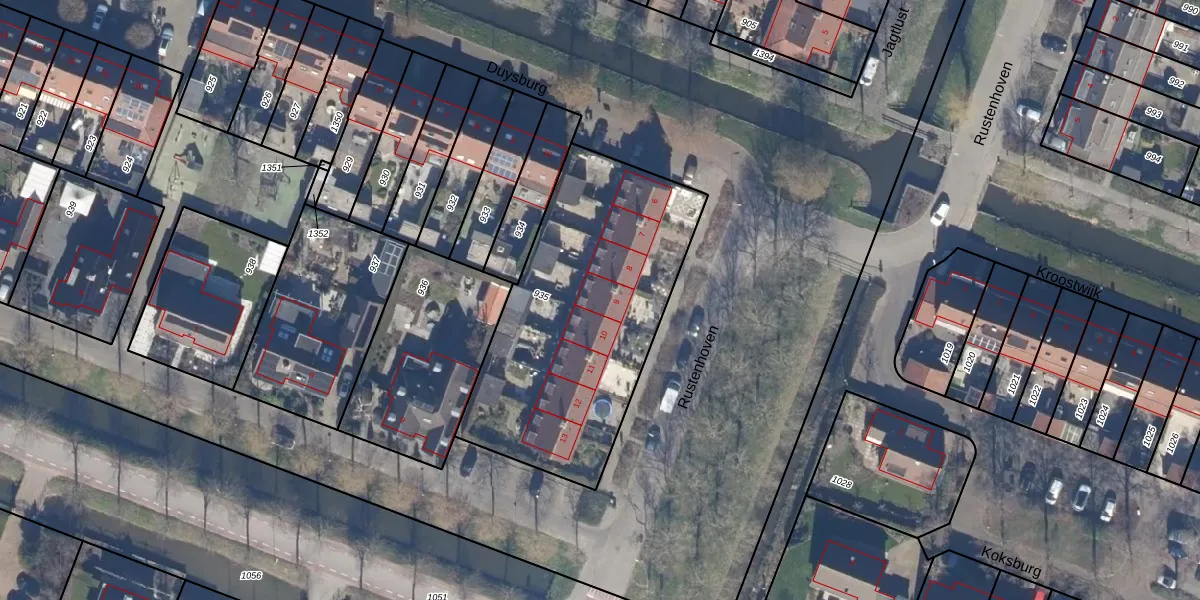 Het perceel waarop Rustenhoven 9 staat heeft een oppervlakte van 1306 m². Dit is een zeer groot perceel. De perceeloppervlakte wordt geregistreerd door het Kadaster. Gedetailleerde informatie over de maten van dit perceel kunt u vinden in het rapport Kadastrale kaart met maatvoering van Rustenhoven 9.