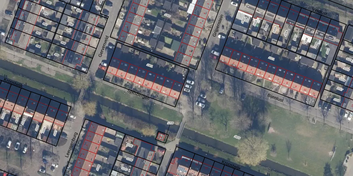 Het perceel waarop Spitsbergen 8 staat heeft een oppervlakte van 992 m². Dit is een groot perceel. De perceeloppervlakte wordt geregistreerd door het Kadaster. Gedetailleerde informatie over de maten van dit perceel kunt u vinden in het rapport Kadastrale kaart met maatvoering van Spitsbergen 8.