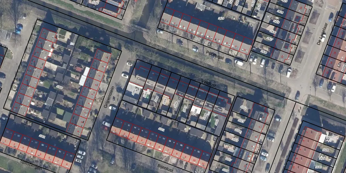 Gebruik de zoekbalk of klik op een perceel voor informatie over de adressen binnen dit perceel.