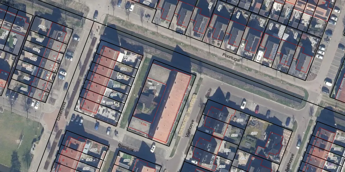 Het perceel waarop Vlijthoeve 23-a staat heeft een oppervlakte van 1154 m². Dit is een zeer groot perceel. De perceeloppervlakte wordt geregistreerd door het Kadaster. Gedetailleerde informatie over de maten van dit perceel kunt u vinden in het rapport Kadastrale kaart met maatvoering van Vlijthoeve 23-a.