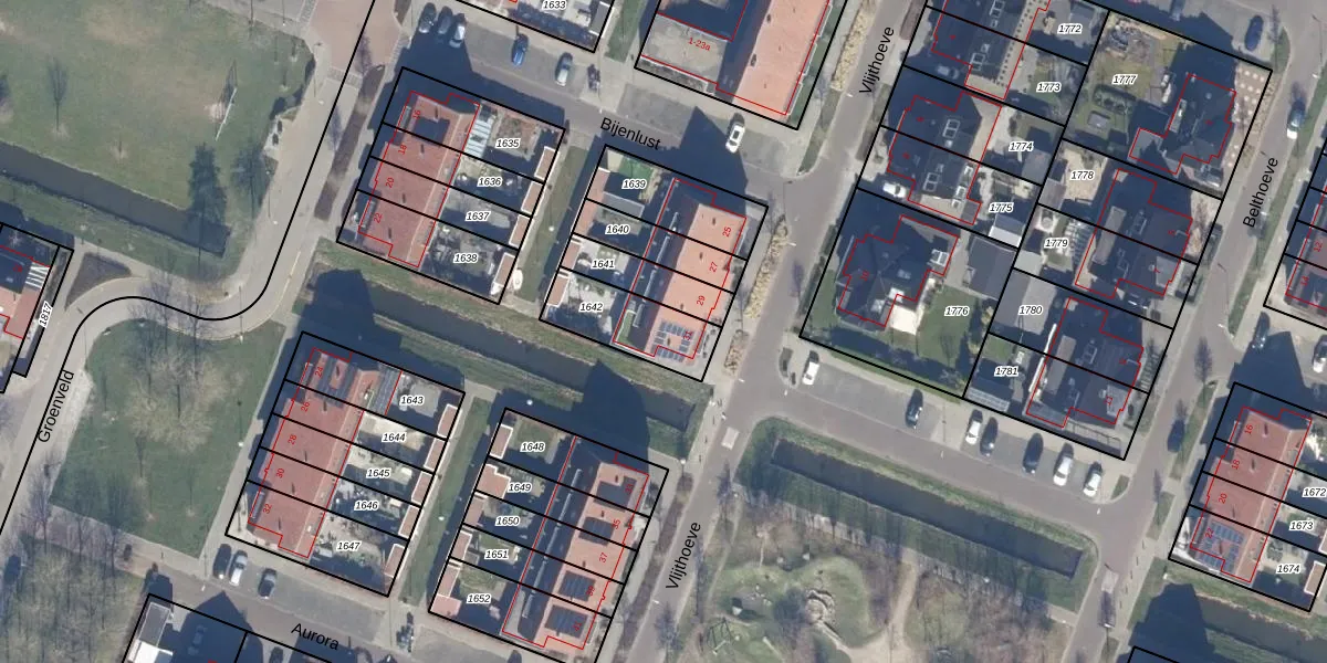 Het perceel waarop Vlijthoeve 31 staat heeft een oppervlakte van 228 m². Dit is een middelgroot perceel. De perceeloppervlakte wordt geregistreerd door het Kadaster. Gedetailleerde informatie over de maten van dit perceel kunt u vinden in het rapport Kadastrale kaart met maatvoering van Vlijthoeve 31.