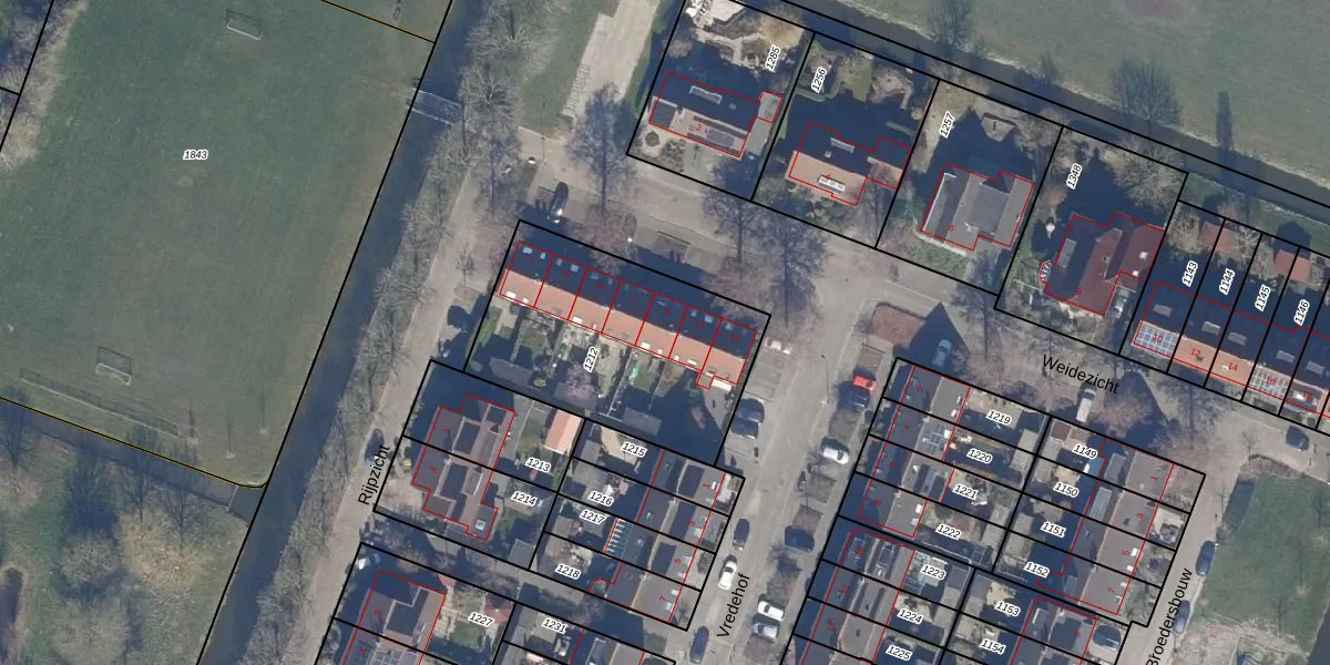 Het perceel waarop Weidezicht 9 staat heeft een oppervlakte van 984 m². Dit is een groot perceel. De perceeloppervlakte wordt geregistreerd door het Kadaster. Gedetailleerde informatie over de maten van dit perceel kunt u vinden in het rapport Kadastrale kaart met maatvoering van Weidezicht 9.