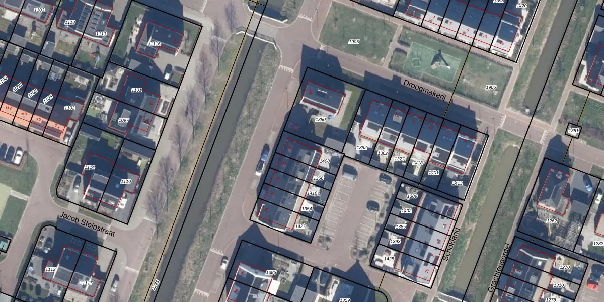 Het perceel waarop Werelderfgoed 36 staat heeft een oppervlakte van 165 m². Dit is een middelgroot perceel. De perceeloppervlakte wordt geregistreerd door het Kadaster. Gedetailleerde informatie over de maten van dit perceel kunt u vinden in het rapport Kadastrale kaart met maatvoering van Werelderfgoed 36.