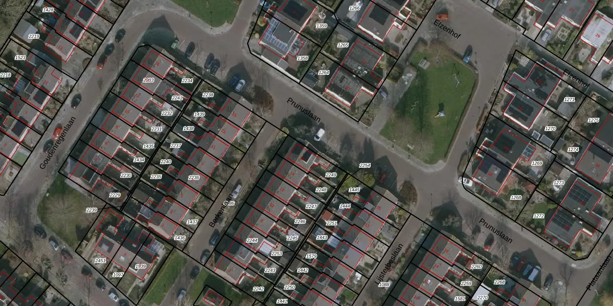 Gebruik de zoekbalk of klik op een perceel voor informatie over de adressen binnen dit perceel.