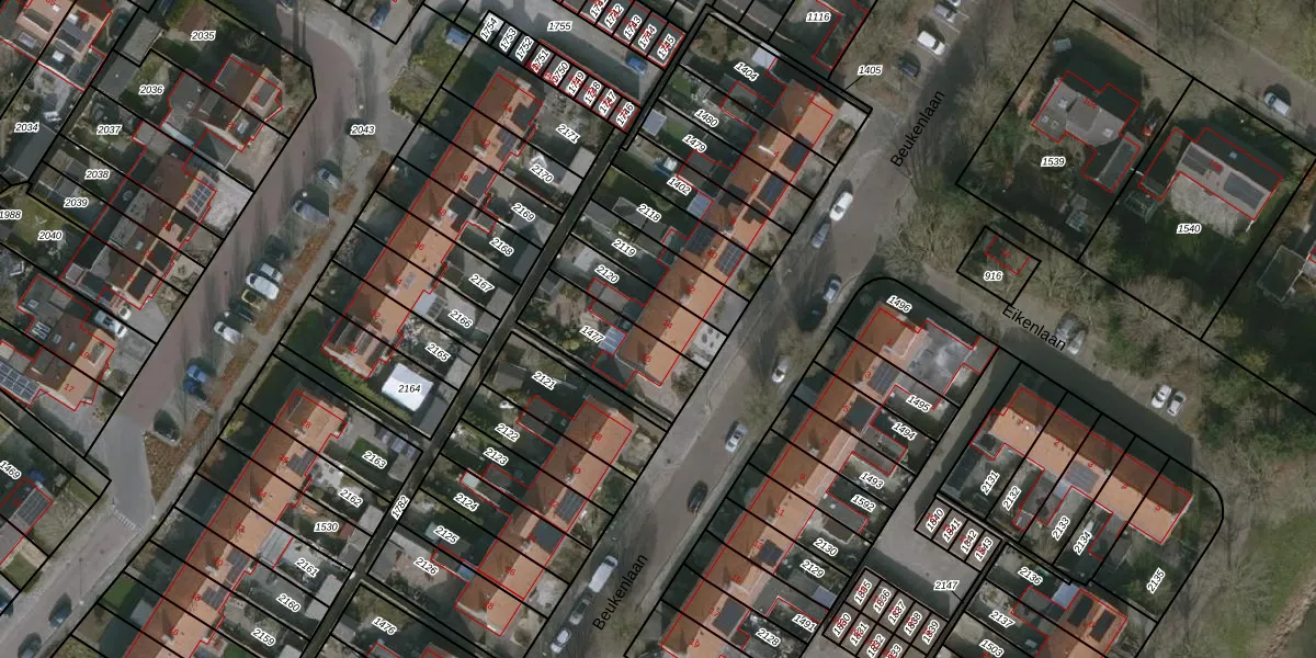 Gebruik de zoekbalk of klik op een perceel voor informatie over de adressen binnen dit perceel.