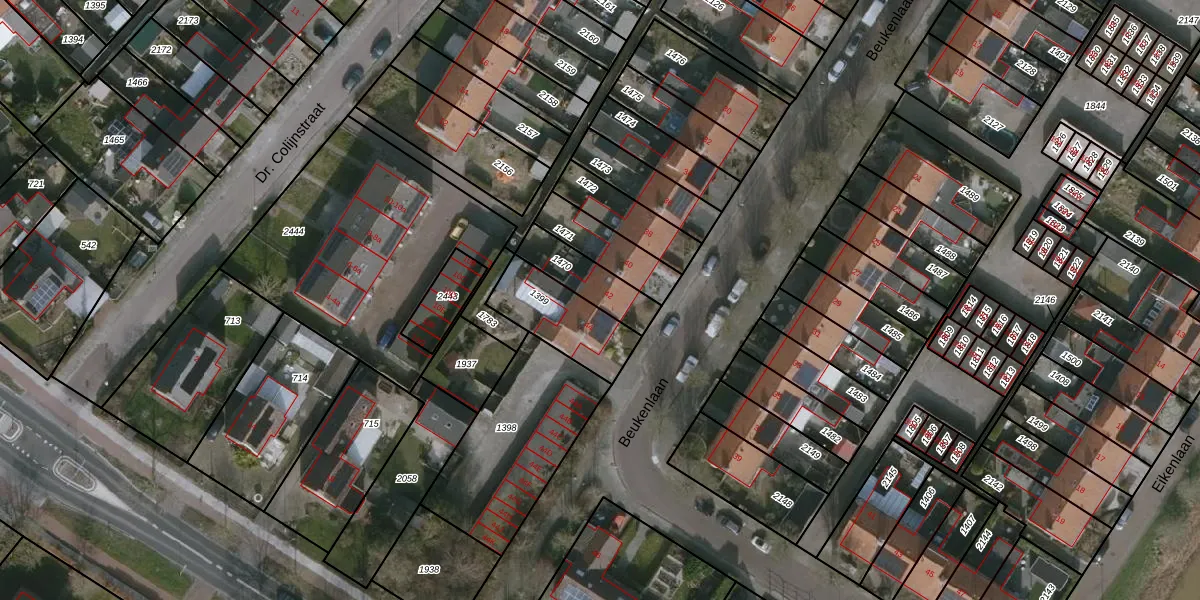 Gebruik de zoekbalk of klik op een perceel voor informatie over de adressen binnen dit perceel.