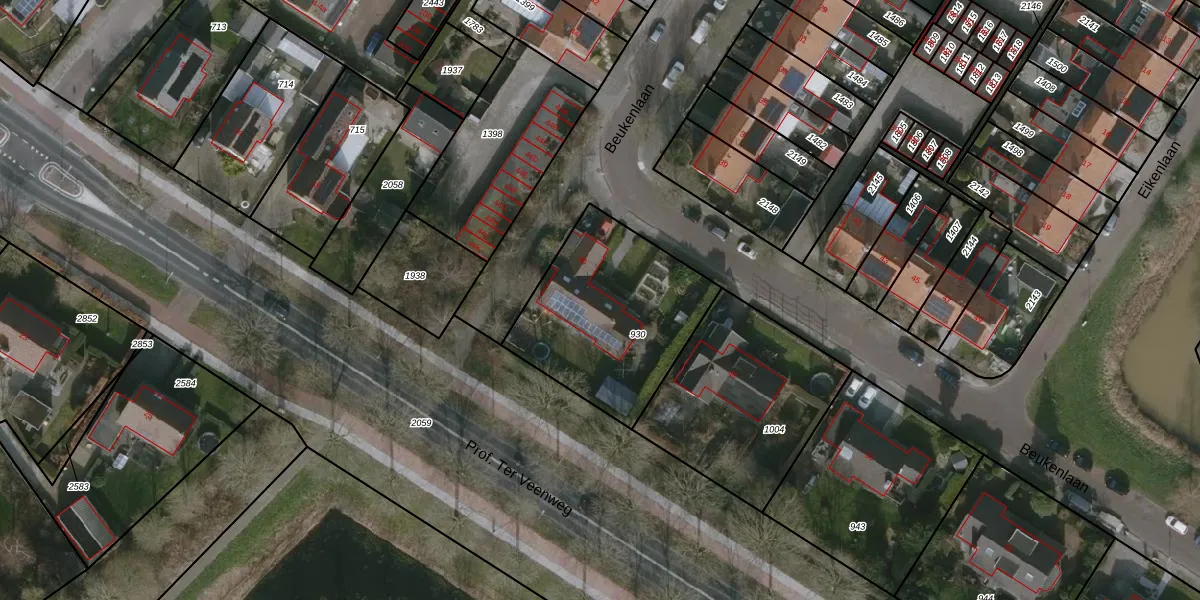 Gebruik de zoekbalk of klik op een perceel voor informatie over de adressen binnen dit perceel.