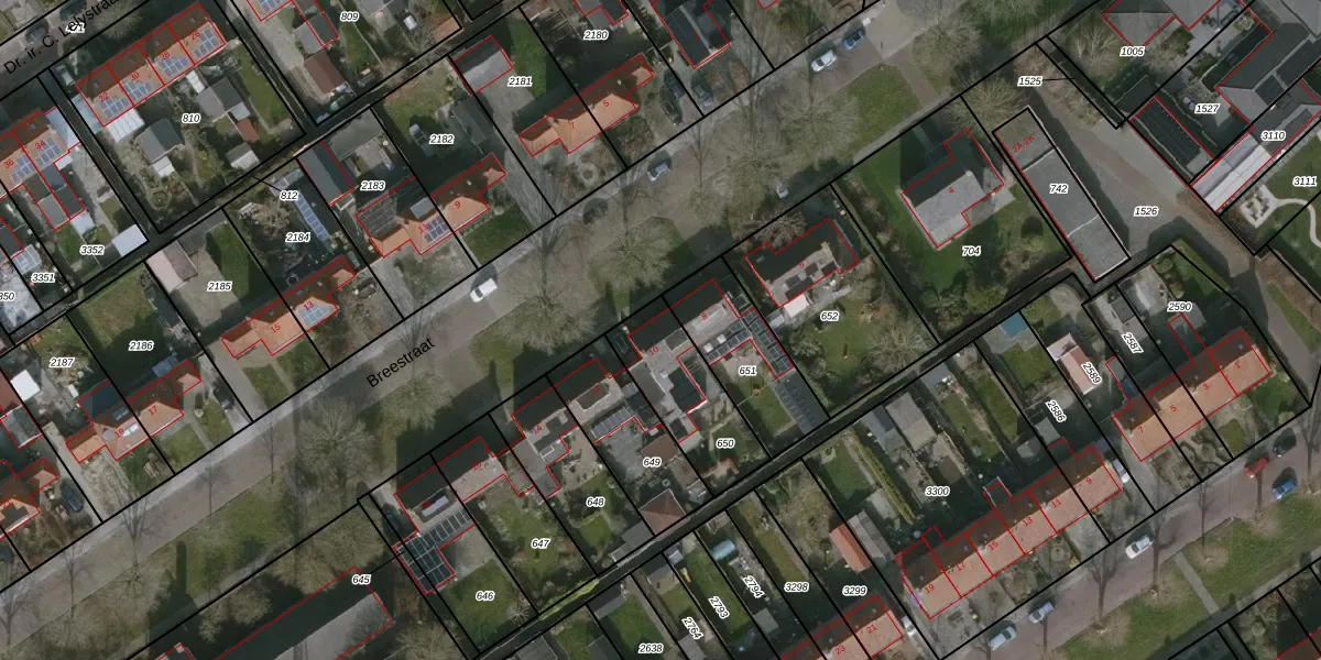 Het perceel waarop Breestraat 10 staat heeft een oppervlakte van 319 m². Dit is een groot perceel. De perceeloppervlakte wordt geregistreerd door het Kadaster. Gedetailleerde informatie over de maten van dit perceel kunt u vinden in het rapport Kadastrale kaart met maatvoering van Breestraat 10.