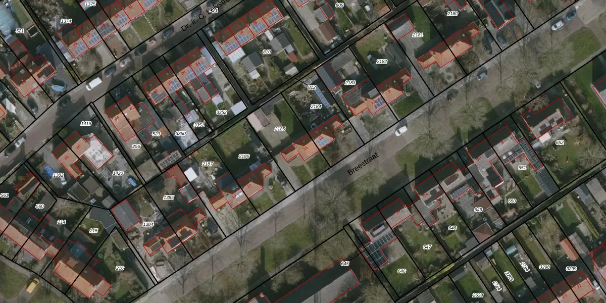 Gebruik de zoekbalk of klik op een perceel voor informatie over de adressen binnen dit perceel.