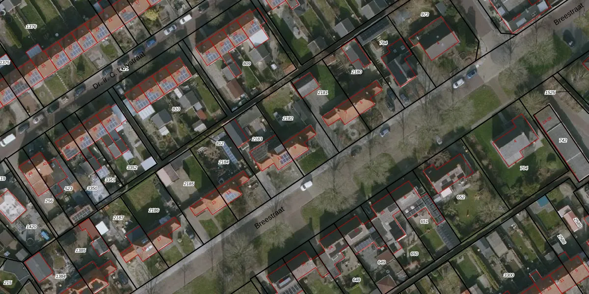Het perceel waarop Breestraat 9 staat heeft een oppervlakte van 425 m². Dit is een groot perceel. De perceeloppervlakte wordt geregistreerd door het Kadaster. Gedetailleerde informatie over de maten van dit perceel kunt u vinden in het rapport Kadastrale kaart met maatvoering van Breestraat 9.