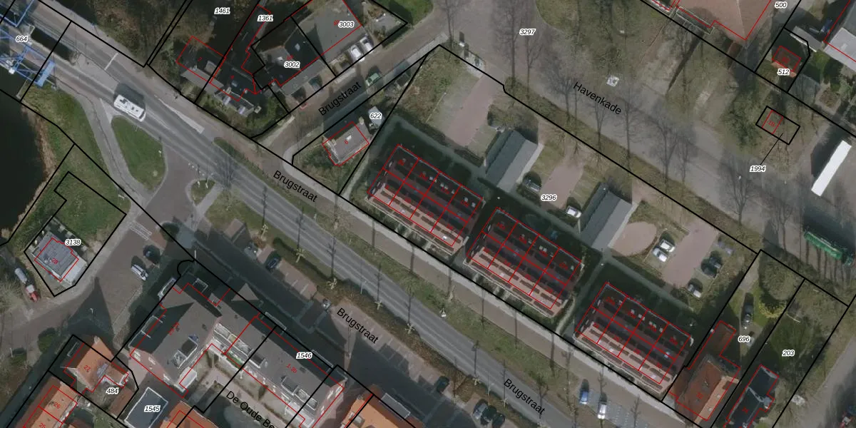 Het perceel waarop Brugstraat 12 staat heeft een oppervlakte van 3710 m². Dit is een zeer groot perceel. De perceeloppervlakte wordt geregistreerd door het Kadaster. Gedetailleerde informatie over de maten van dit perceel kunt u vinden in het rapport Kadastrale kaart met maatvoering van Brugstraat 12.
