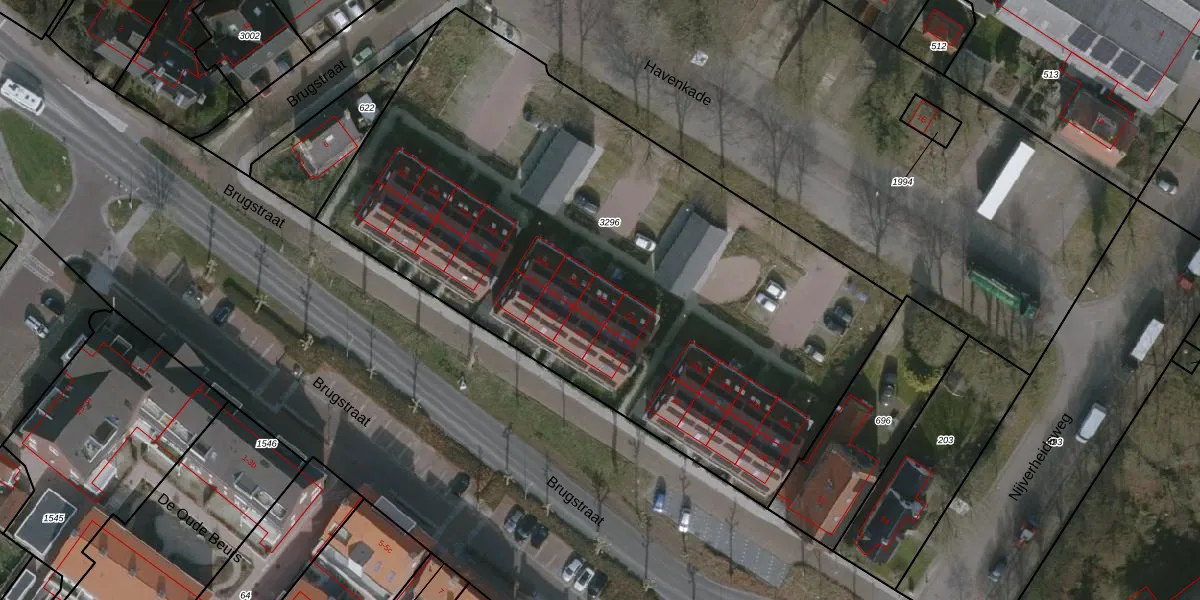 Het perceel waarop Brugstraat 20-a staat heeft een oppervlakte van 3710 m². Dit is een zeer groot perceel. De perceeloppervlakte wordt geregistreerd door het Kadaster. Gedetailleerde informatie over de maten van dit perceel kunt u vinden in het rapport Kadastrale kaart met maatvoering van Brugstraat 20-a.