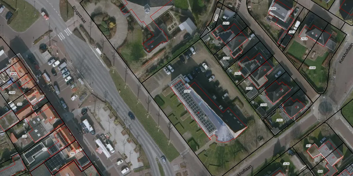 Het perceel waarop Brugstraat 38 staat heeft een oppervlakte van 2955 m². Dit is een zeer groot perceel. De perceeloppervlakte wordt geregistreerd door het Kadaster. Gedetailleerde informatie over de maten van dit perceel kunt u vinden in het rapport Kadastrale kaart met maatvoering van Brugstraat 38.