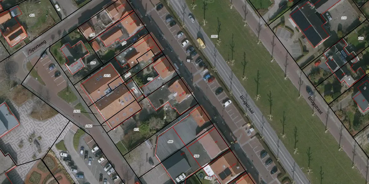Het perceel waarop Brugstraat 39-c staat heeft een oppervlakte van 855 m². Dit is een groot perceel. De perceeloppervlakte wordt geregistreerd door het Kadaster. Gedetailleerde informatie over de maten van dit perceel kunt u vinden in het rapport Kadastrale kaart met maatvoering van Brugstraat 39-c.