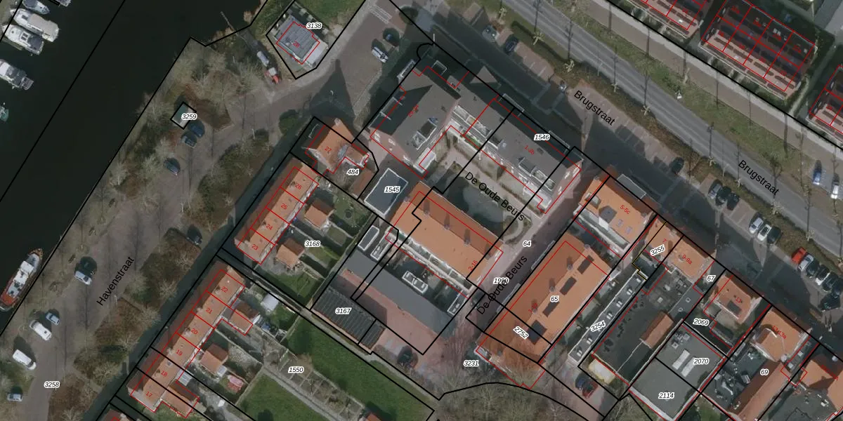 Het perceel waarop De Oude Beurs 16 staat heeft een oppervlakte van 1112 m². Dit is een zeer groot perceel. De perceeloppervlakte wordt geregistreerd door het Kadaster. Gedetailleerde informatie over de maten van dit perceel kunt u vinden in het rapport Kadastrale kaart met maatvoering van De Oude Beurs 16.