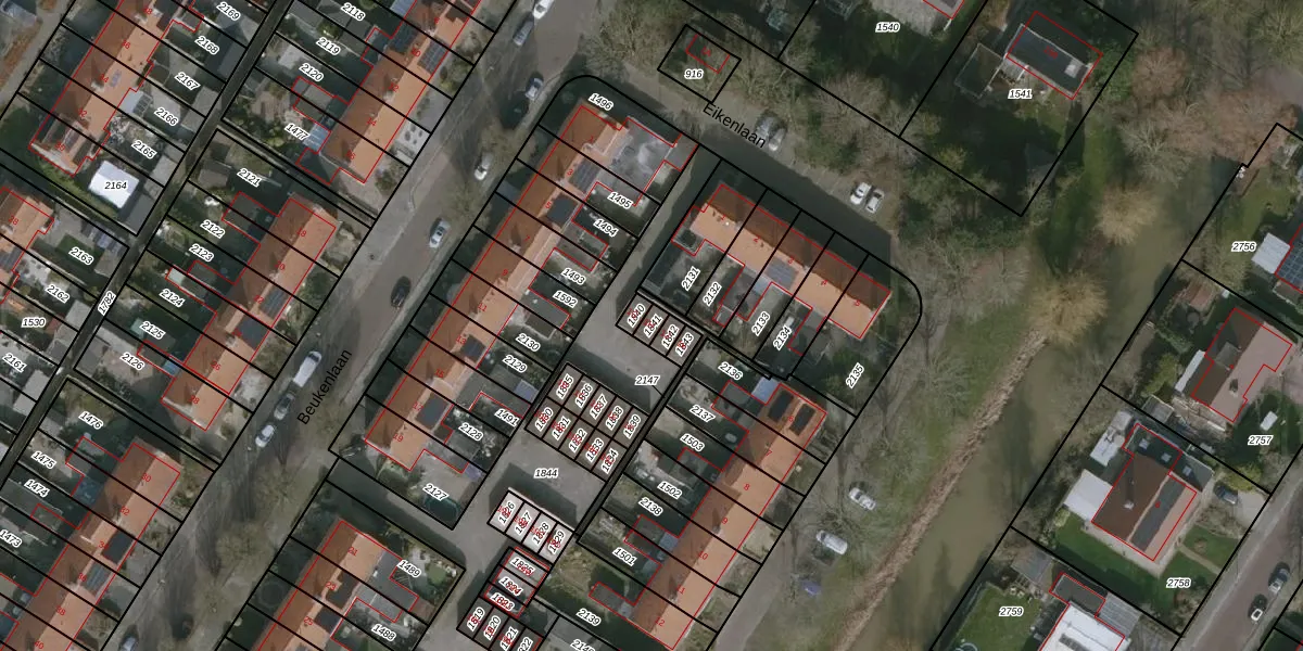 Gebruik de zoekbalk of klik op een perceel voor informatie over de adressen binnen dit perceel.