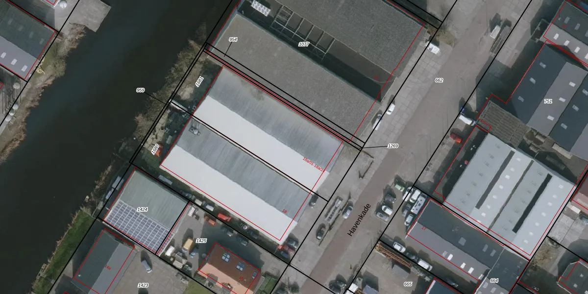 Het perceel waarop Havenkade 18-a-04 staat heeft een oppervlakte van 1297 m². Dit is een zeer groot perceel. De perceeloppervlakte wordt geregistreerd door het Kadaster. Gedetailleerde informatie over de maten van dit perceel kunt u vinden in het rapport Kadastrale kaart met maatvoering van Havenkade 18-a-04.