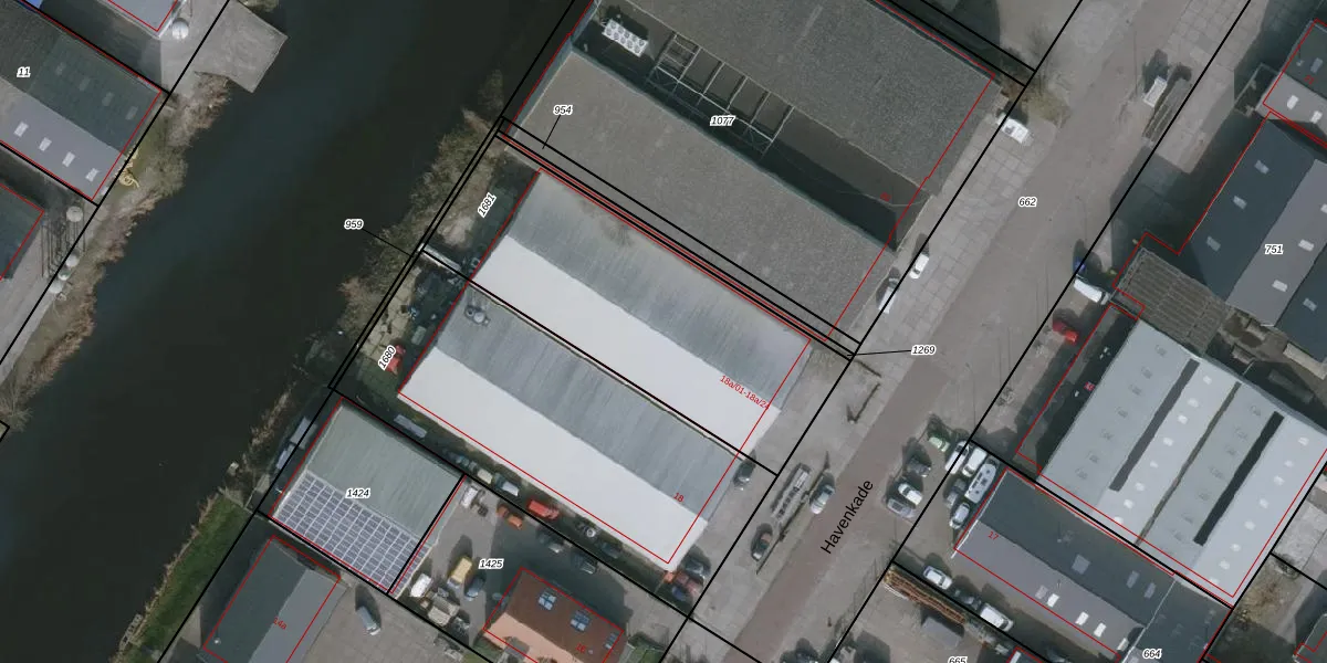 Het perceel waarop Havenkade 18-a-06 staat heeft een oppervlakte van 1297 m². Dit is een zeer groot perceel. De perceeloppervlakte wordt geregistreerd door het Kadaster. Gedetailleerde informatie over de maten van dit perceel kunt u vinden in het rapport Kadastrale kaart met maatvoering van Havenkade 18-a-06.