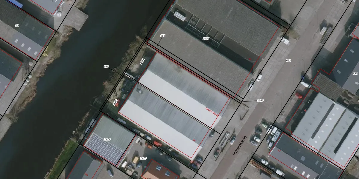 Het perceel waarop Havenkade 18-a-08 staat heeft een oppervlakte van 1297 m². Dit is een zeer groot perceel. De perceeloppervlakte wordt geregistreerd door het Kadaster. Gedetailleerde informatie over de maten van dit perceel kunt u vinden in het rapport Kadastrale kaart met maatvoering van Havenkade 18-a-08.