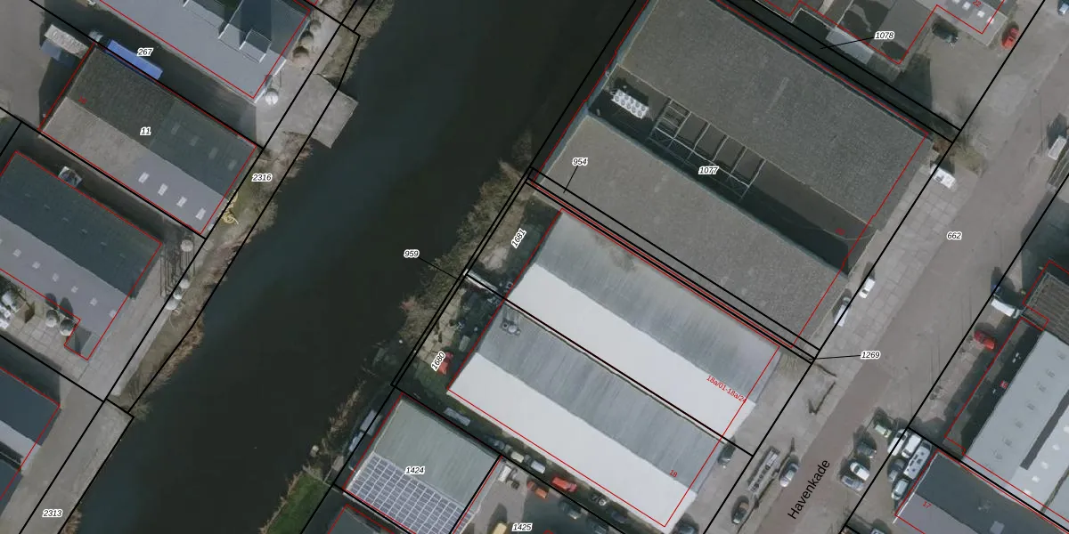 Het perceel waarop Havenkade 18-a-14 staat heeft een oppervlakte van 1297 m². Dit is een zeer groot perceel. De perceeloppervlakte wordt geregistreerd door het Kadaster. Gedetailleerde informatie over de maten van dit perceel kunt u vinden in het rapport Kadastrale kaart met maatvoering van Havenkade 18-a-14.