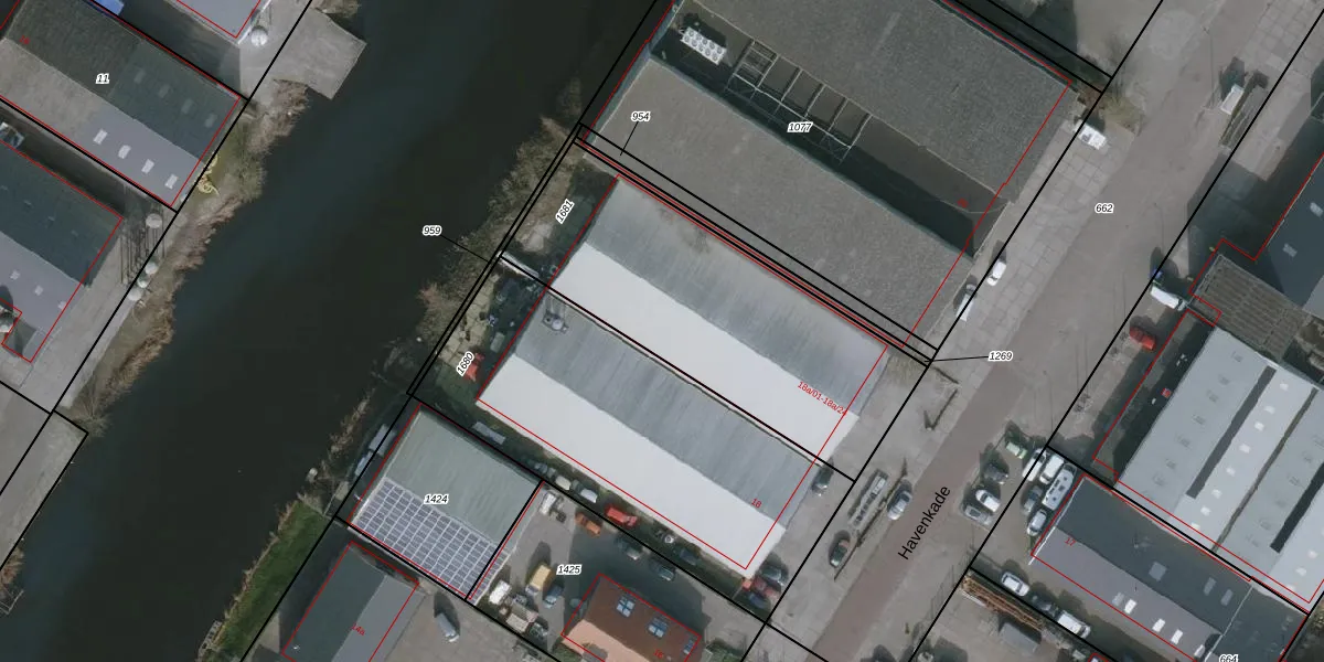 Het perceel waarop Havenkade 18-a-21 staat heeft een oppervlakte van 1297 m². Dit is een zeer groot perceel. De perceeloppervlakte wordt geregistreerd door het Kadaster. Gedetailleerde informatie over de maten van dit perceel kunt u vinden in het rapport Kadastrale kaart met maatvoering van Havenkade 18-a-21.