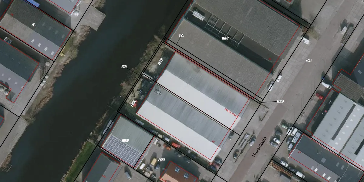 Het perceel waarop Havenkade 18-a-22 staat heeft een oppervlakte van 1297 m². Dit is een zeer groot perceel. De perceeloppervlakte wordt geregistreerd door het Kadaster. Gedetailleerde informatie over de maten van dit perceel kunt u vinden in het rapport Kadastrale kaart met maatvoering van Havenkade 18-a-22.