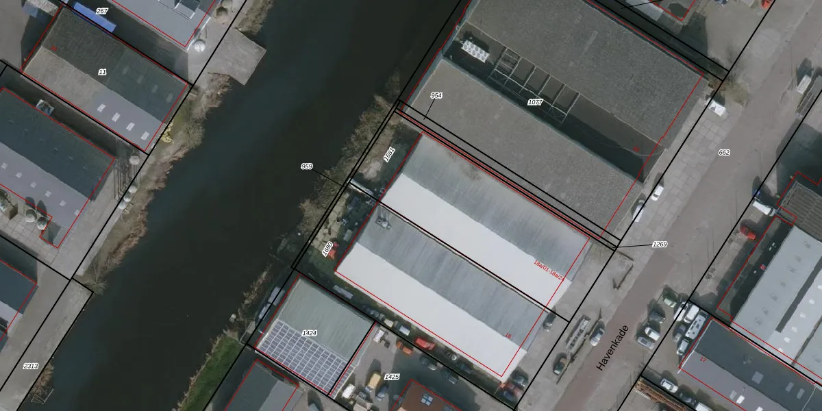 Het perceel waarop Havenkade 18-a-24 staat heeft een oppervlakte van 1297 m². Dit is een zeer groot perceel. De perceeloppervlakte wordt geregistreerd door het Kadaster. Gedetailleerde informatie over de maten van dit perceel kunt u vinden in het rapport Kadastrale kaart met maatvoering van Havenkade 18-a-24.