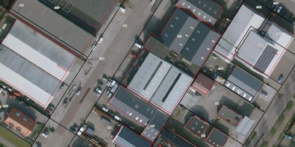 Het perceel waarop Havenkade 19 staat heeft een oppervlakte van 4587 m². Dit is een zeer groot perceel. De perceeloppervlakte wordt geregistreerd door het Kadaster. Gedetailleerde informatie over de maten van dit perceel kunt u vinden in het rapport Kadastrale kaart met maatvoering van Havenkade 19.
