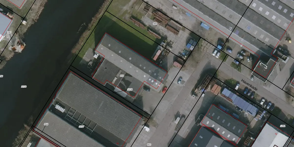 Het perceel waarop Havenkade 22 staat heeft een oppervlakte van 2834 m². Dit is een zeer groot perceel. De perceeloppervlakte wordt geregistreerd door het Kadaster. Gedetailleerde informatie over de maten van dit perceel kunt u vinden in het rapport Kadastrale kaart met maatvoering van Havenkade 22.