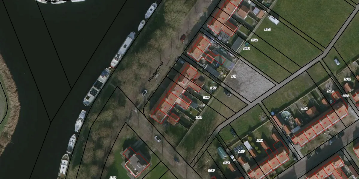 Het perceel waarop Havenstraat 4 staat heeft een oppervlakte van 1143 m². Dit is een zeer groot perceel. De perceeloppervlakte wordt geregistreerd door het Kadaster. Gedetailleerde informatie over de maten van dit perceel kunt u vinden in het rapport Kadastrale kaart met maatvoering van Havenstraat 4.